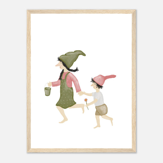 Premium-Poster "Zwergenliebe - Hand in Hand" mit Holzleisten
