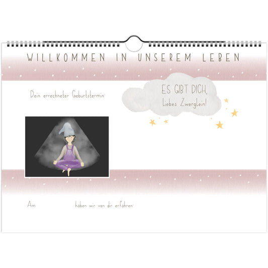 Baby Erinnerungsbuch handillustriert Zwergendesign | Babyalbum 0–3 Jahre Hardcover | Geschenk zur Geburt & Taufe | Aquarell Ausfüllalbum