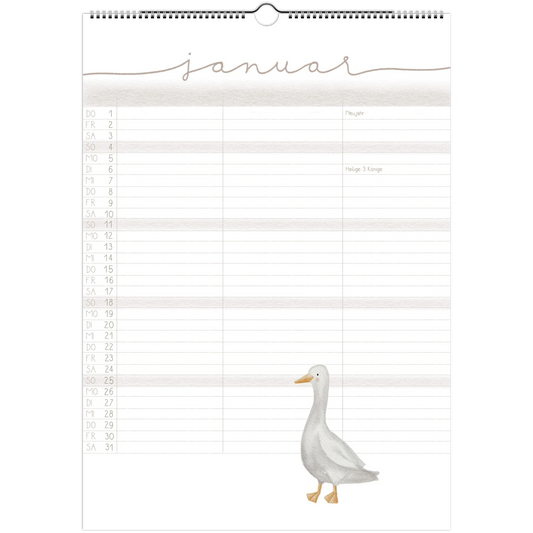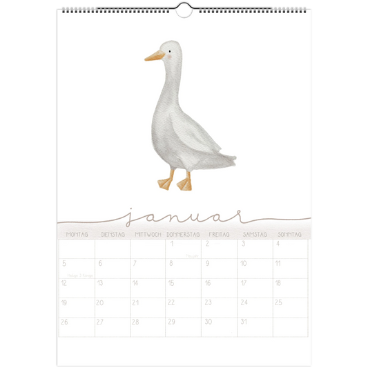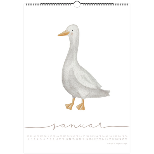 Wandplaner 2026 Lieblingstiere A3/A4 | Handillustrierter Aquarell Kalender | Ruhiges Kinderzimmer Design | Geschenk Familie