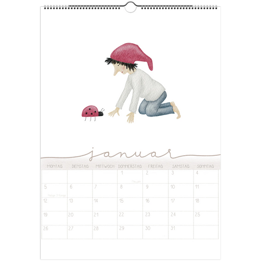 Wandplaner 2026 "Zwerge" A3/A4 – liebevoll illustrierter Kalender mit Zwergenmotiven | märchenhaftes Design | Weihnachtsgeschenk 2026