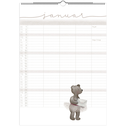 Lustiger Bären Familienplaner 2026 - Wandkalender für die ganze Familie mit 3 Spalten, Geschenkidee