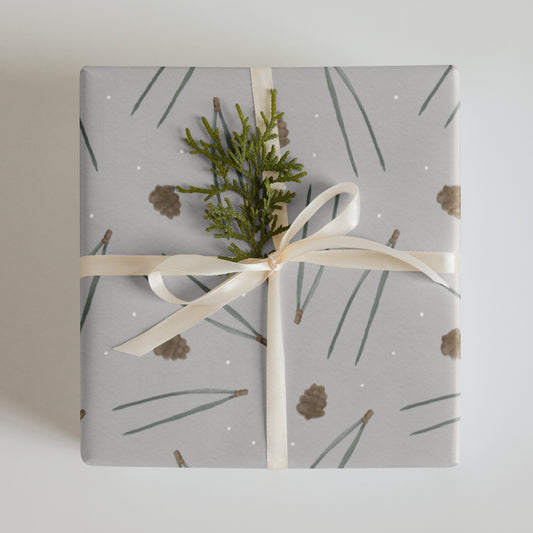 Geschenkpapier 3 Bögen "winterliche Kiefernnadeln & Zapfen"