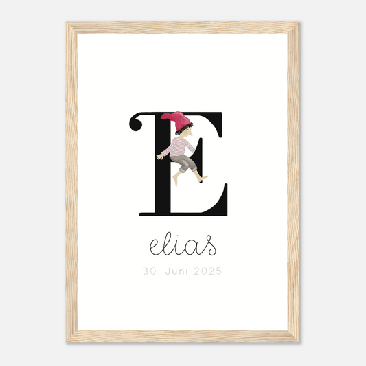gerahmtes Geburtsposter mit Zwergenbuchstabe (personalisierbar)