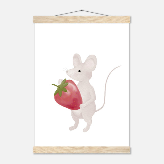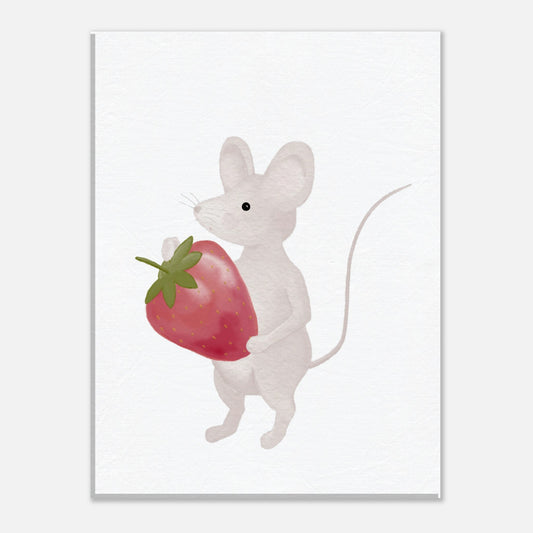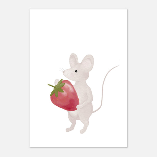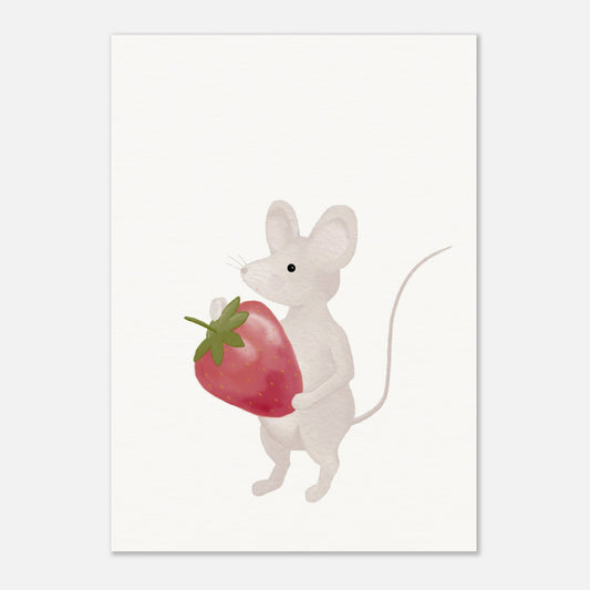 Poster "Kleine Maus mit Erdbeere" auf mattem Premium-Papier (reinweiß)