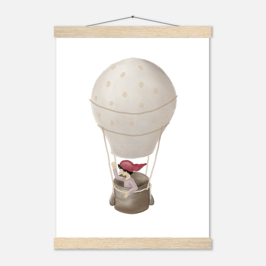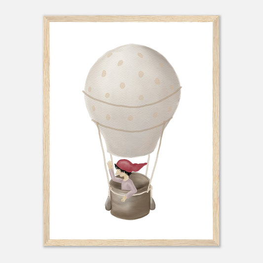 Premium-Poster "Zwerg auf Ballonfahrt" mit Holzleisten