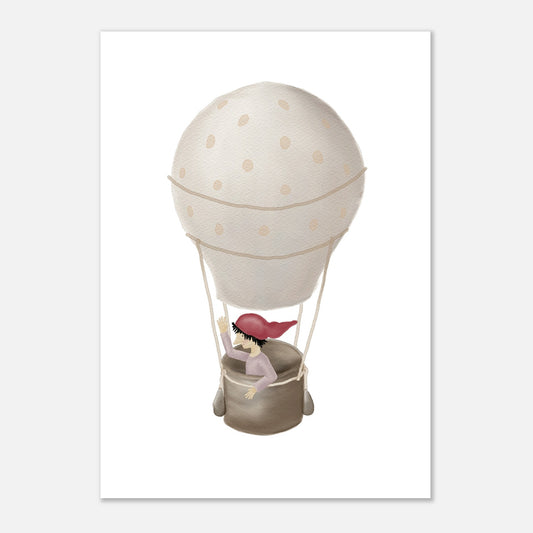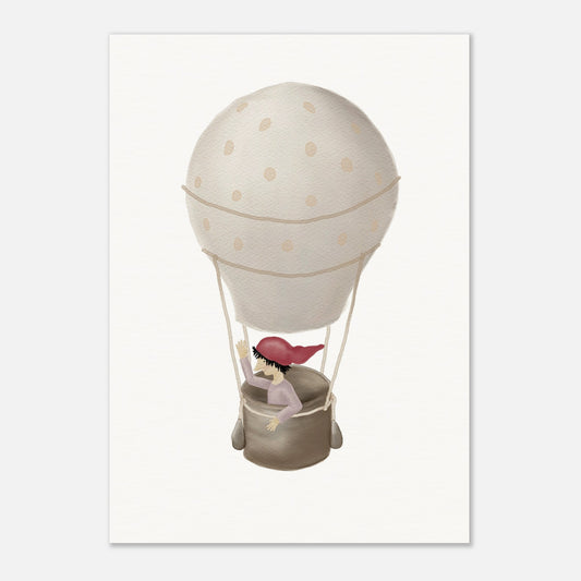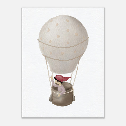 Poster "Zwerg auf Ballonfahrt" auf mattem Premium-Papier (reinweiß)