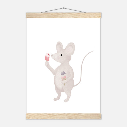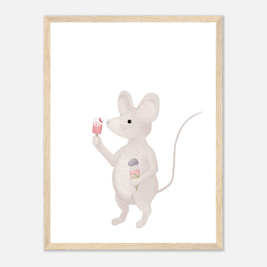 Premium-Poster "Kleine Maus mit Eis" mit Holzleisten