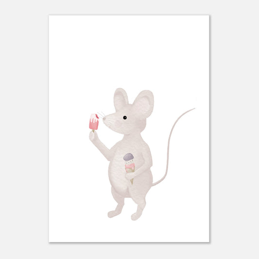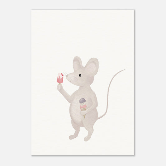 Poster "Kleine Maus mit Eis" auf mattem Premium-Papier (reinweiß)