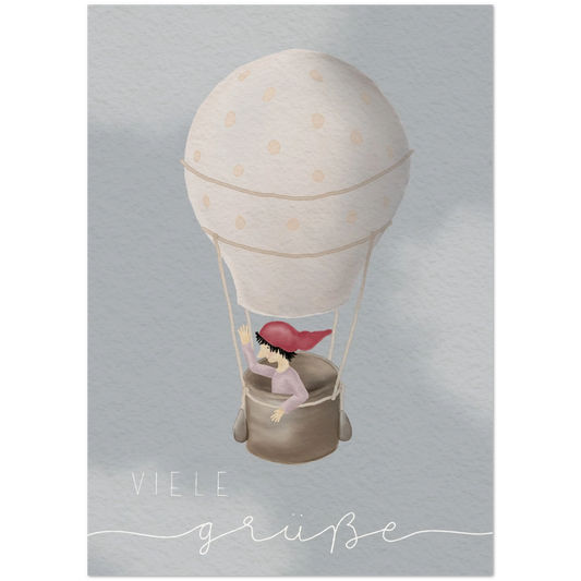 Premium Poster "Zwerg auf Ballonfahrt" auf mattem Papier in Museumsqualität (naturweiß)