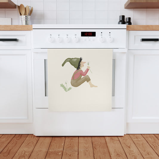 Küchenhandtuch aus Baumwolle "Zwerg mit Pusteblume"