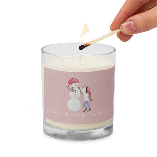 Kerze im Glas "Zwerg und Schneemann wünschen frohe Weihnachten"
