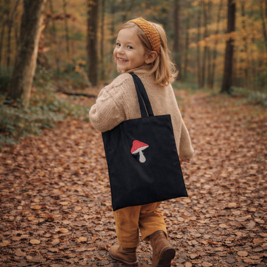 Baumwoll-Tragetasche mit süßer Fliegenpilz-Stickerei