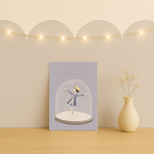 Winterkarten Set 10 Stück – "Kleiner König in Schneekugel" | handillustrierte Grußkarten A5/A6 | „Herzliche Wintergrüße“