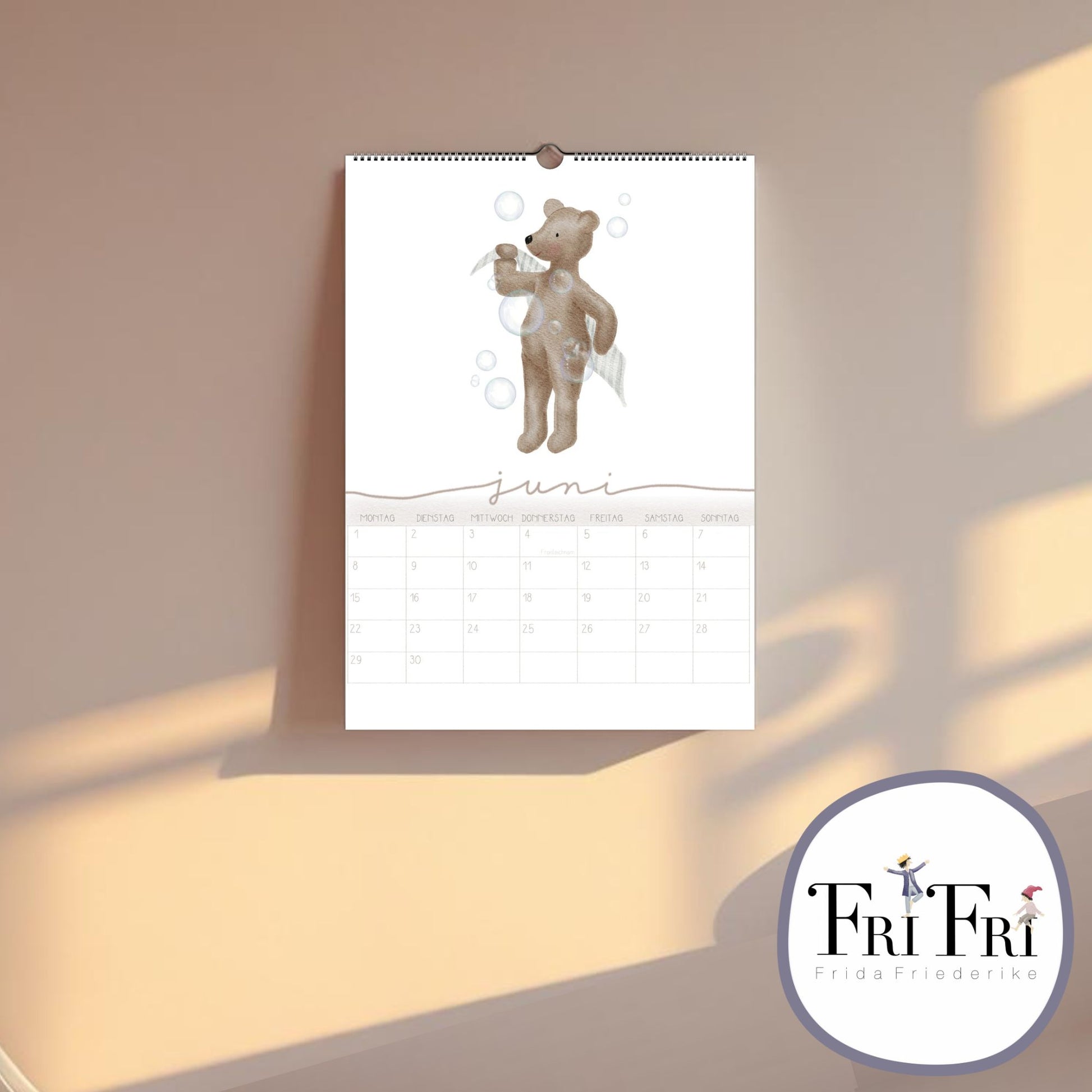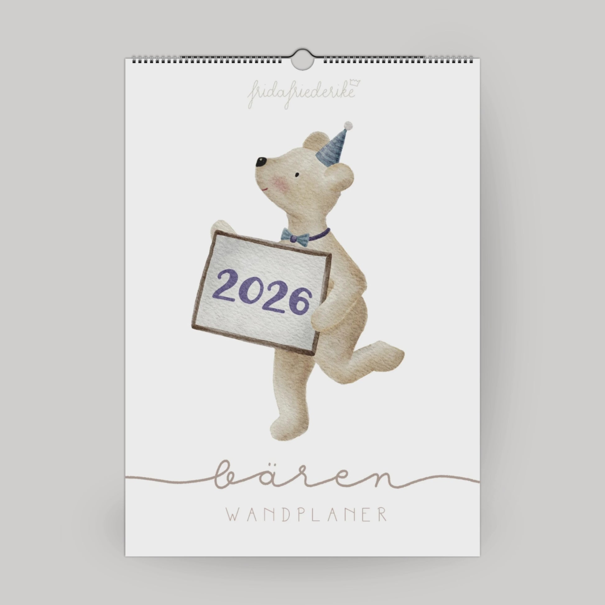 Unser Wandkalender 2026 ist ganz den charmantesten Geschöpfen des Waldes gewidmet: den Bären – in ihren witzigsten und fruchtigsten Varianten! Jeden Monat begrüßt dich ein neuer handillustrierter Bär im Aquarellstil – mal mit Beere, mal mit Seife, aber immer mit einem Augenzwinkern.