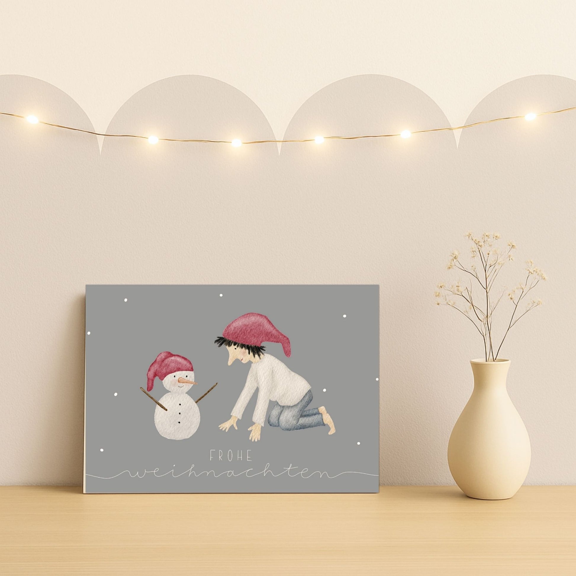 Weihnachtskarten Set 10 Stück – "Wichtel & Schneemann" | handillustrierte Grußkarten/Postkarten A5/A6 | Frohe Weihnachten