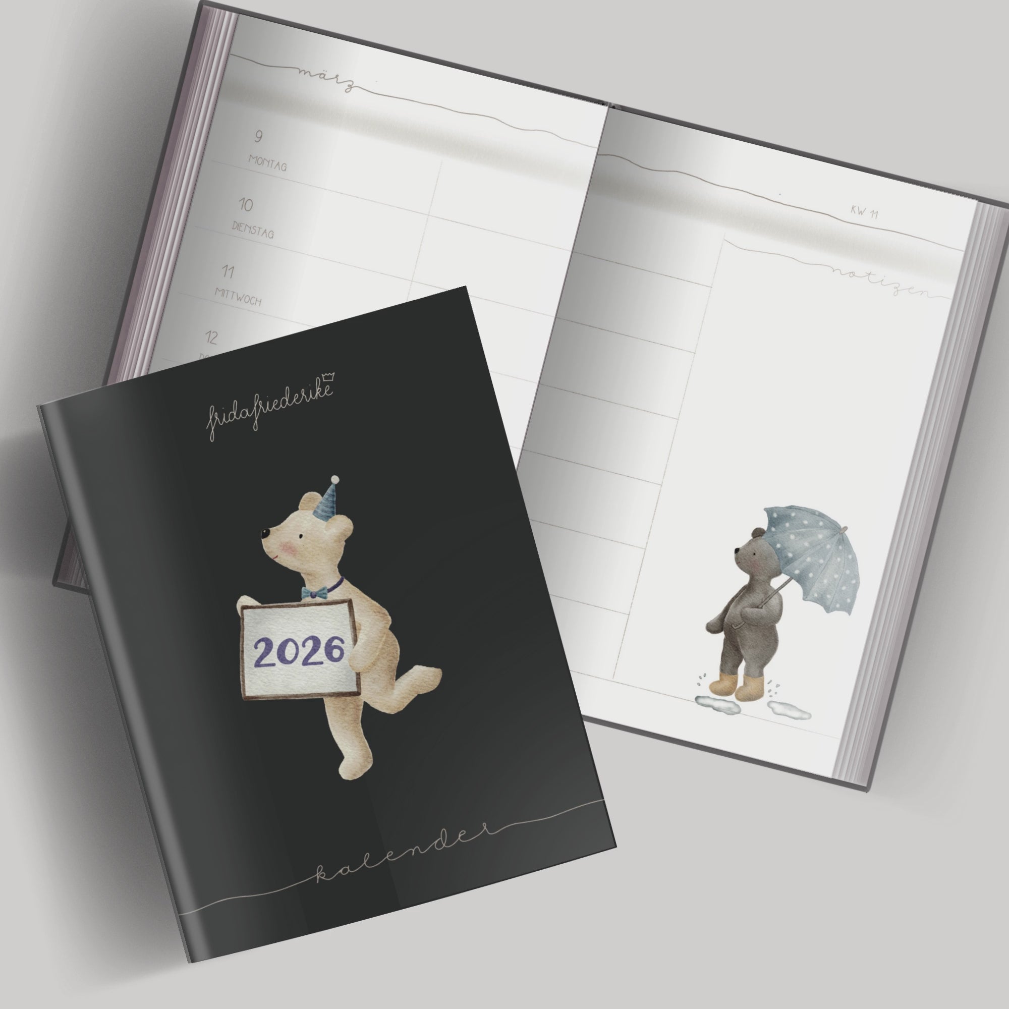 Mit unserem Taschenkalender 2026 beginnt jeder Tag mit einem LĂ€cheln â dank einzigartiger, von Hand illustrierter BĂ€renfreunde, die dich charmant durchs Jahr begleiten.