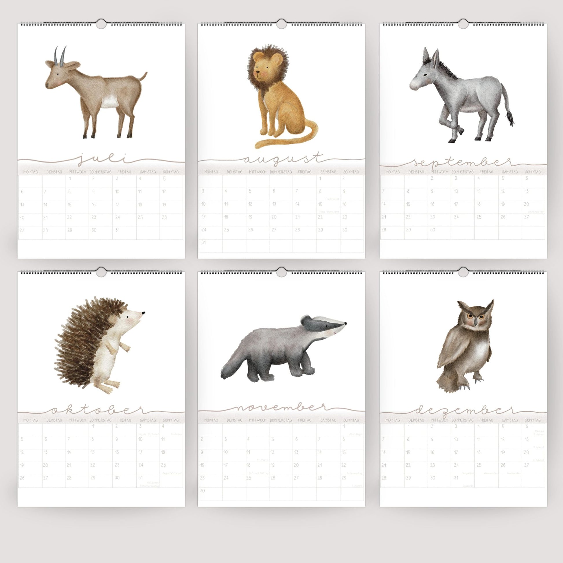 Liebevoll gestalteter Kalender mit handillustrierten Lieblingstieren