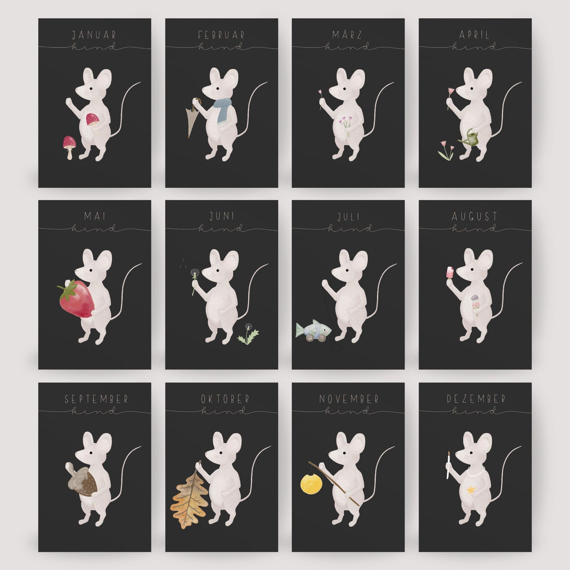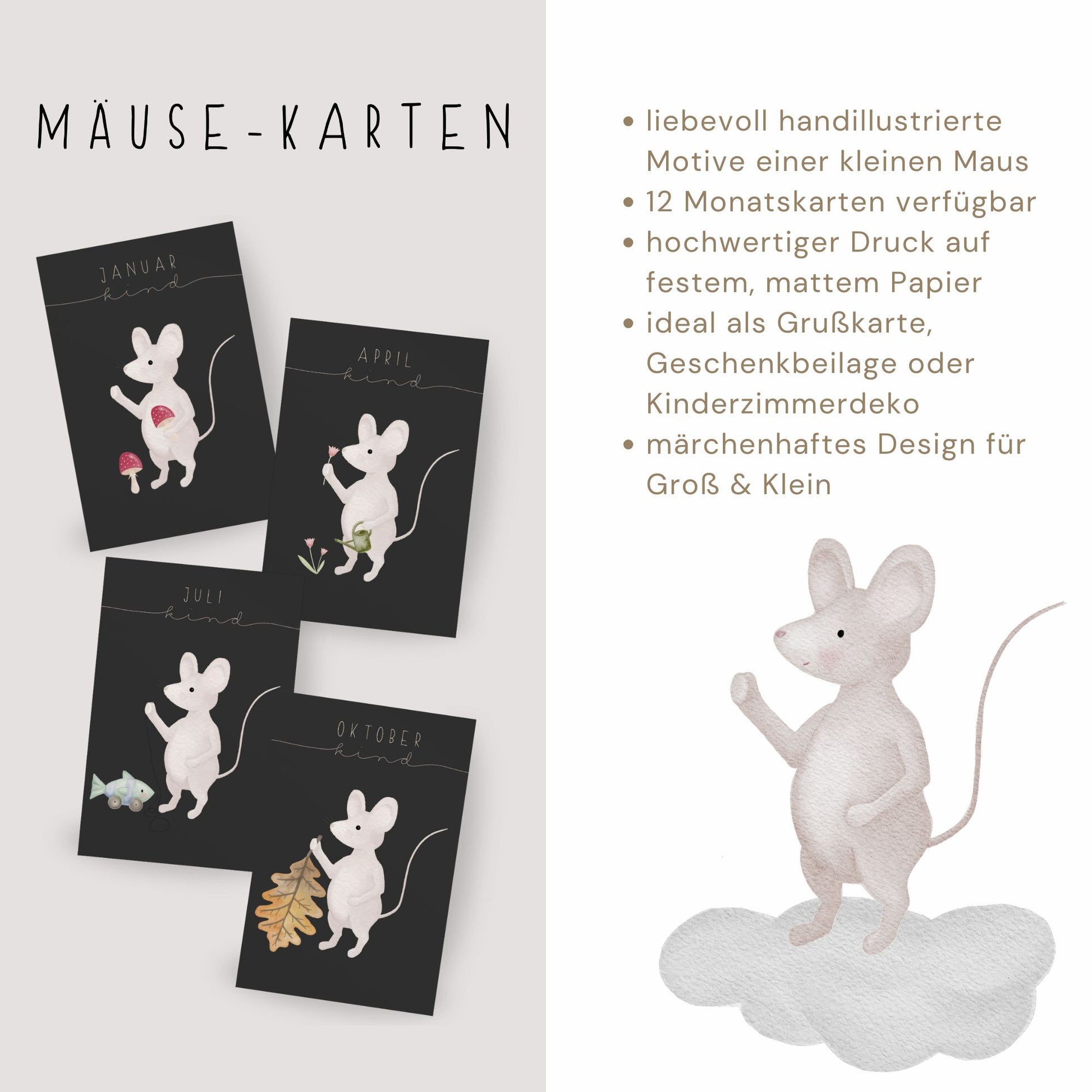 Postkarte kleine Maus "September Kind"