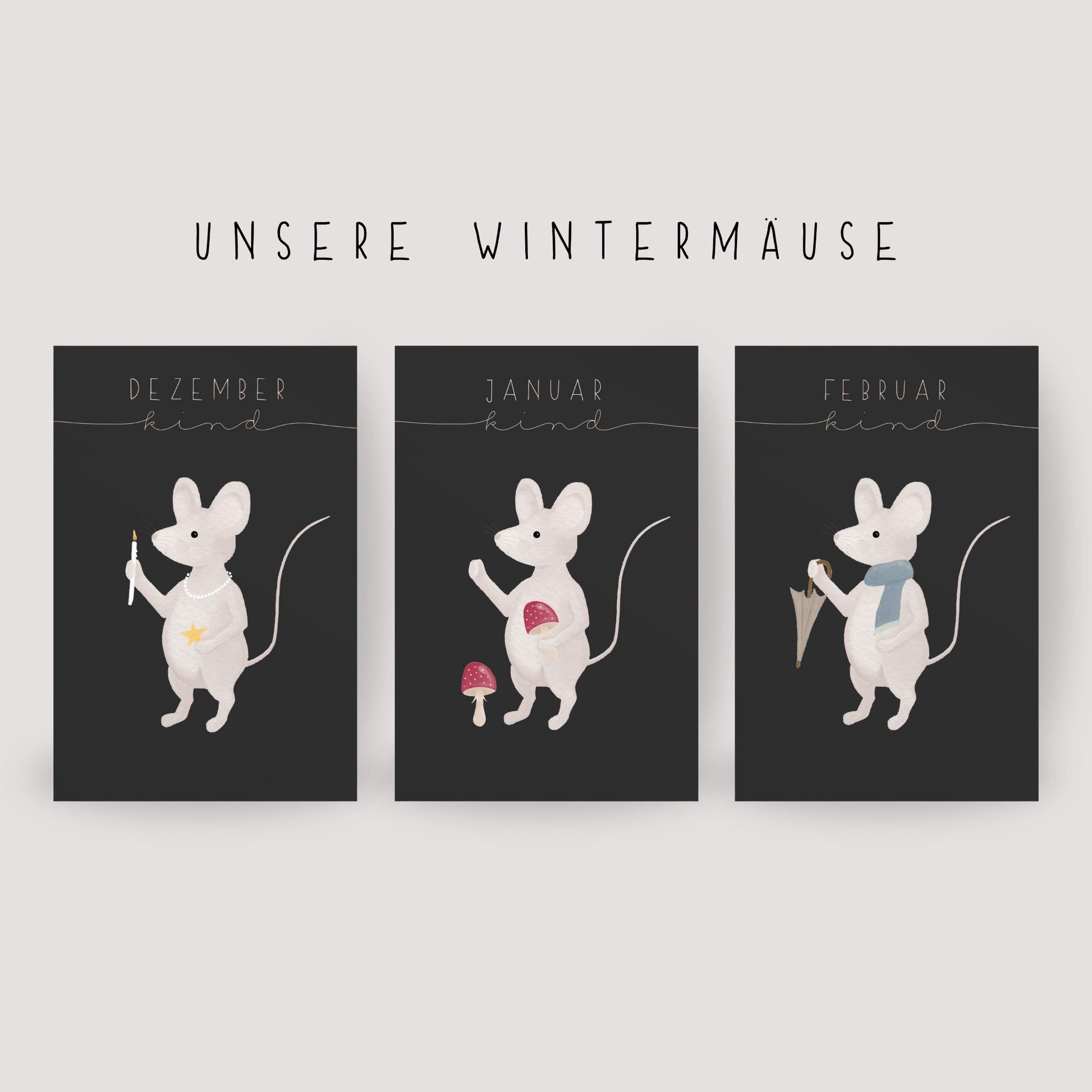 Postkarte kleine Maus "Dezember Kind"