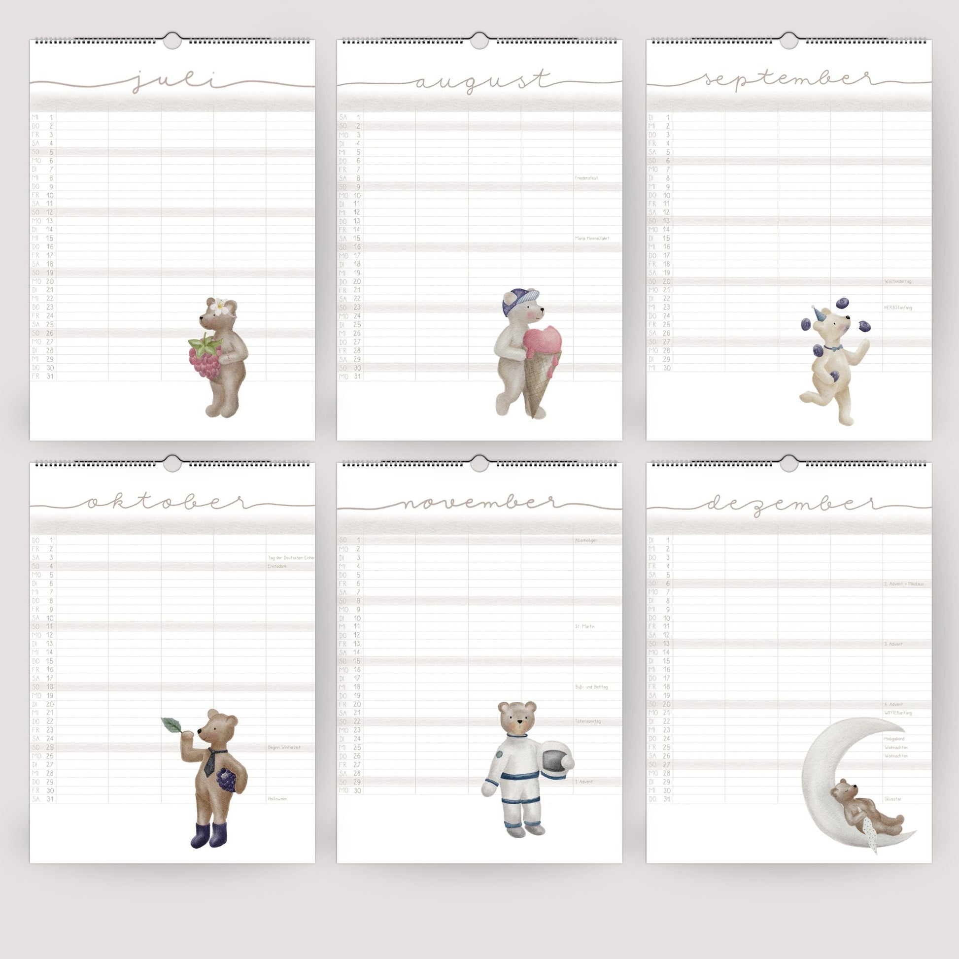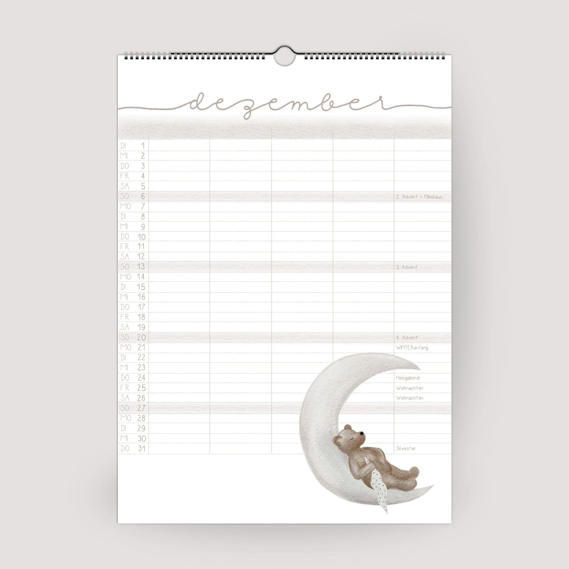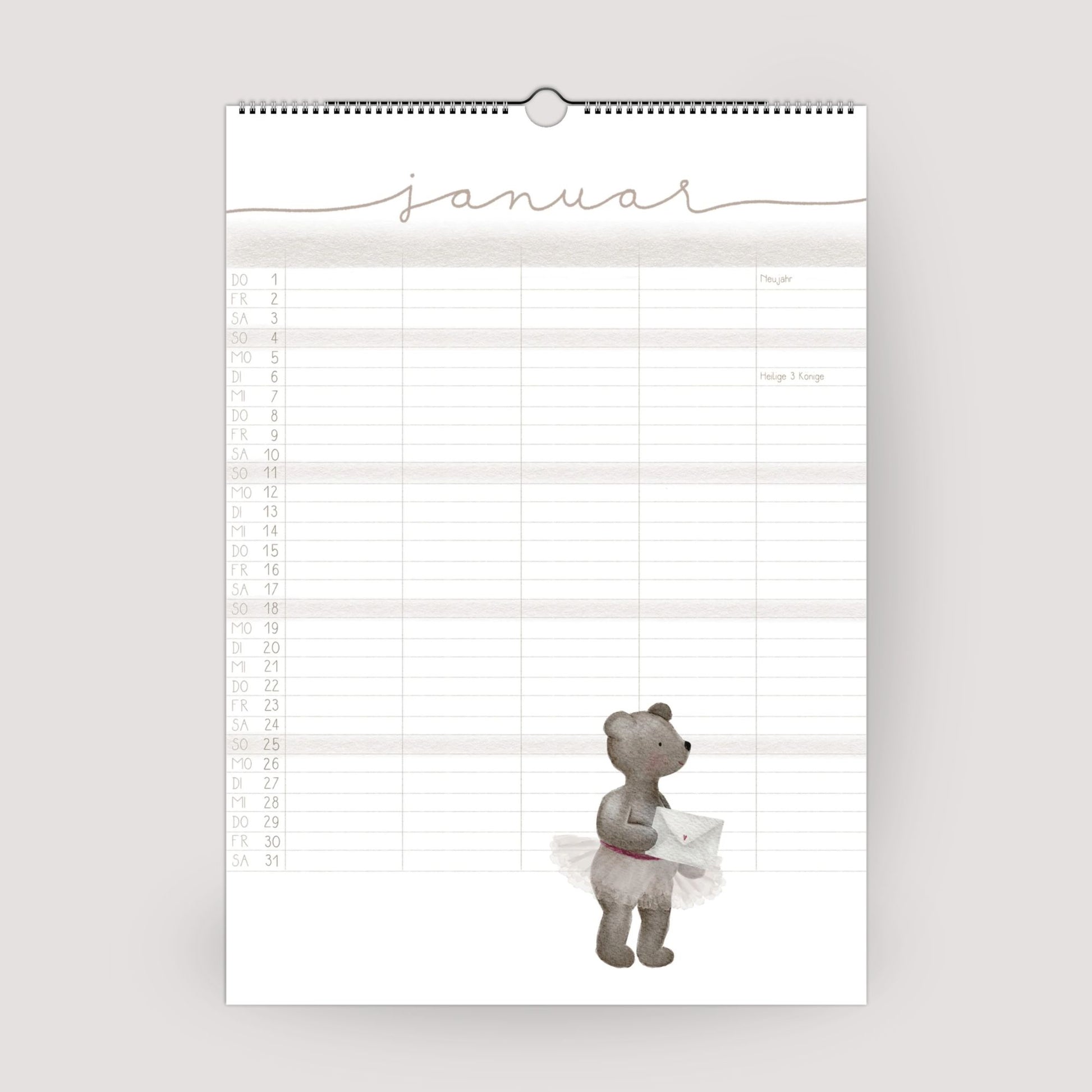 Ein Kalender, der Ordnung in den Familienalltag bringt – und dabei auch noch wunderschön aussieht! Unser liebevoll gestalteter Familienplaner mit handillustrierten Bärenmotiven vereint Funktionalität mit einem humorvollem Hauch von Magie.