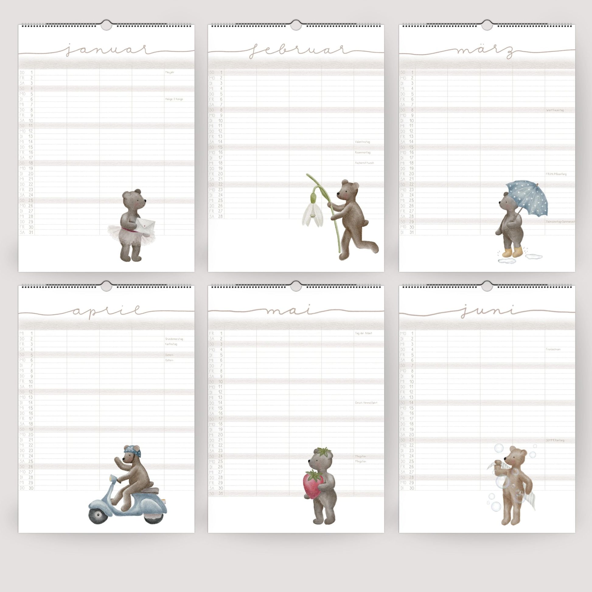 Lass dein Jahr von den humorvollen Bären begleiten – Monat für Monat.