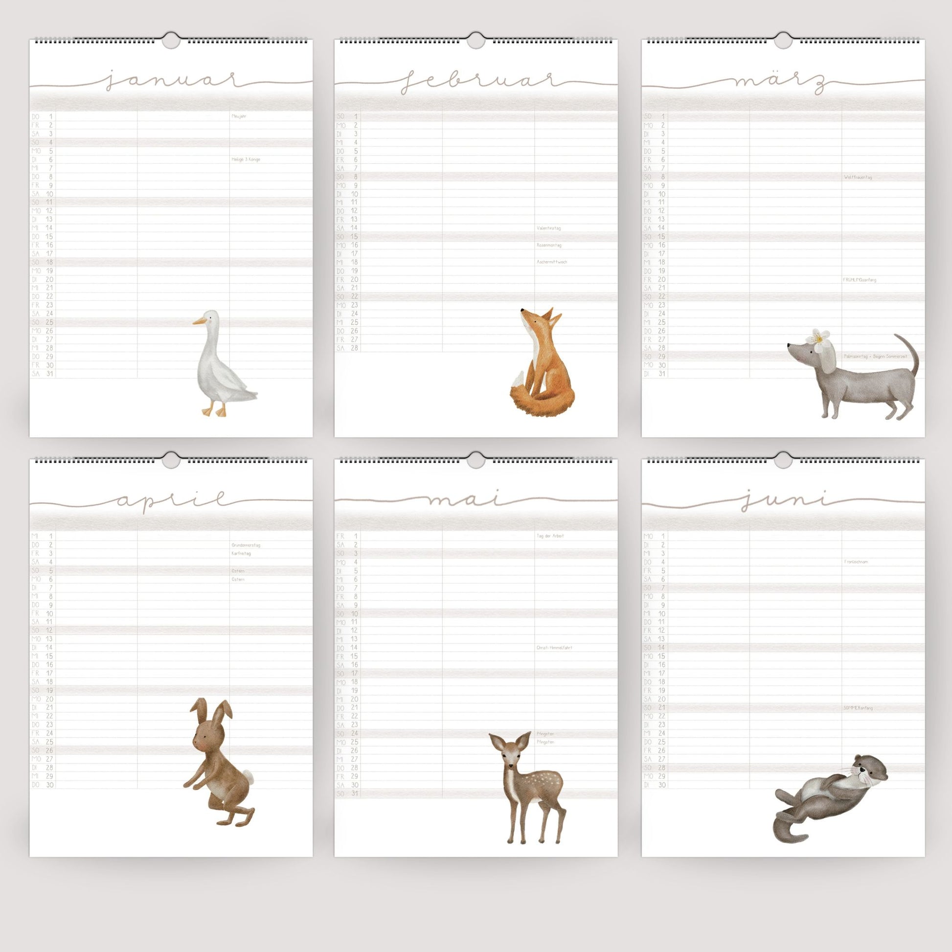 Ein Kalender, der Ordnung in den Familienalltag bringt – und dabei auch noch wunderschön aussieht! Unser liebevoll gestalteter Familienplaner mit handillustrierten Tiermotiven vereint Funktionalität mit einem Hauch von Magie.