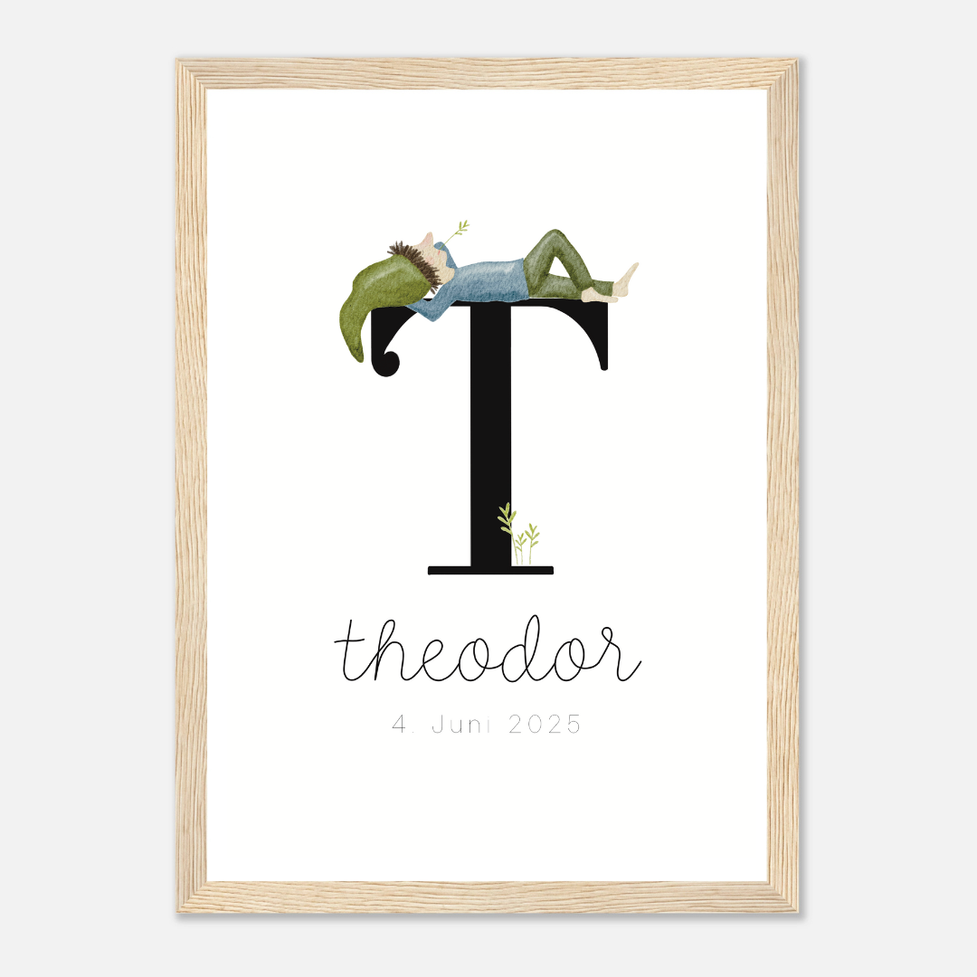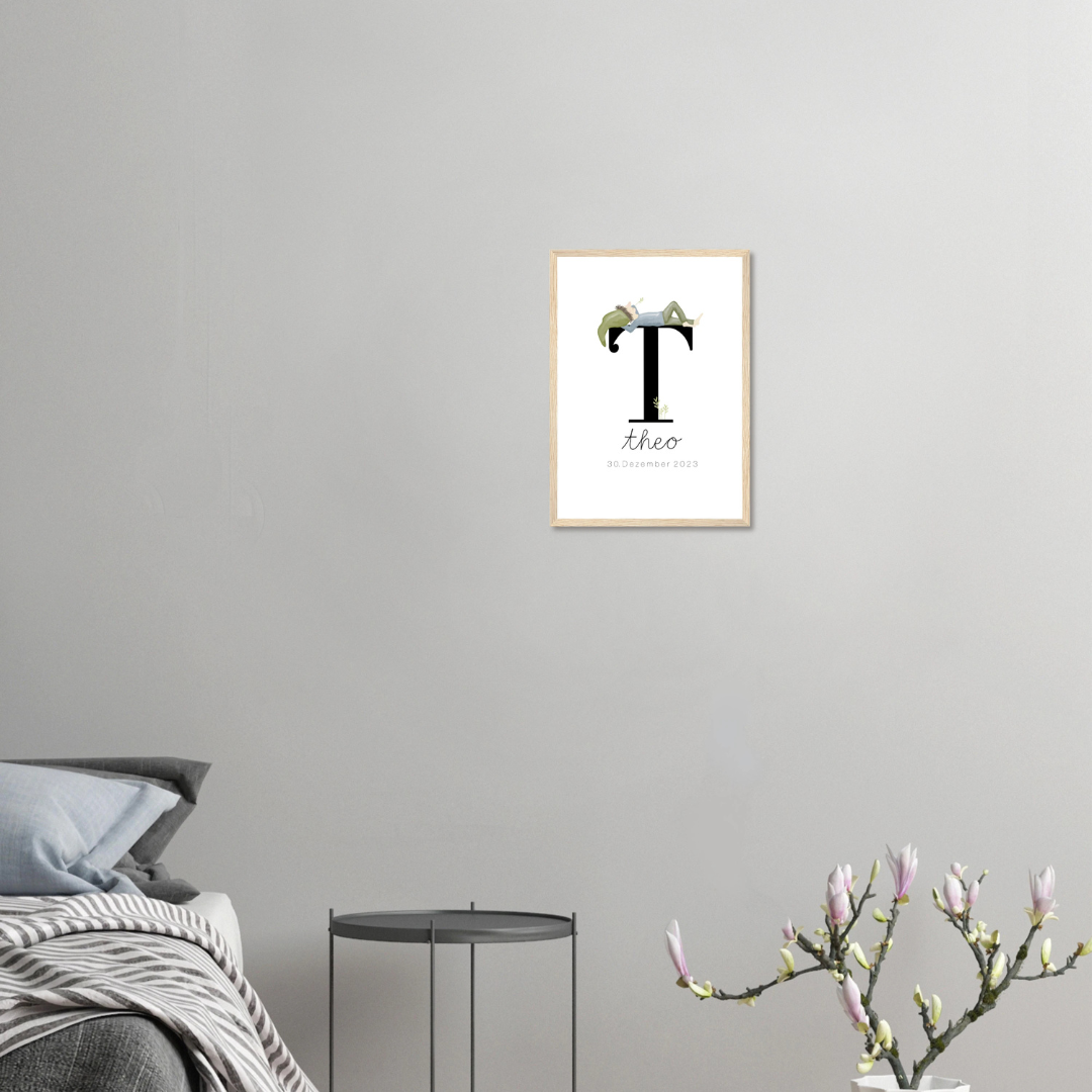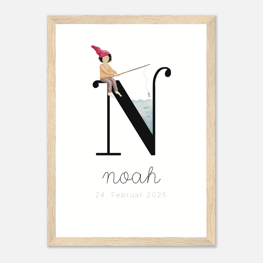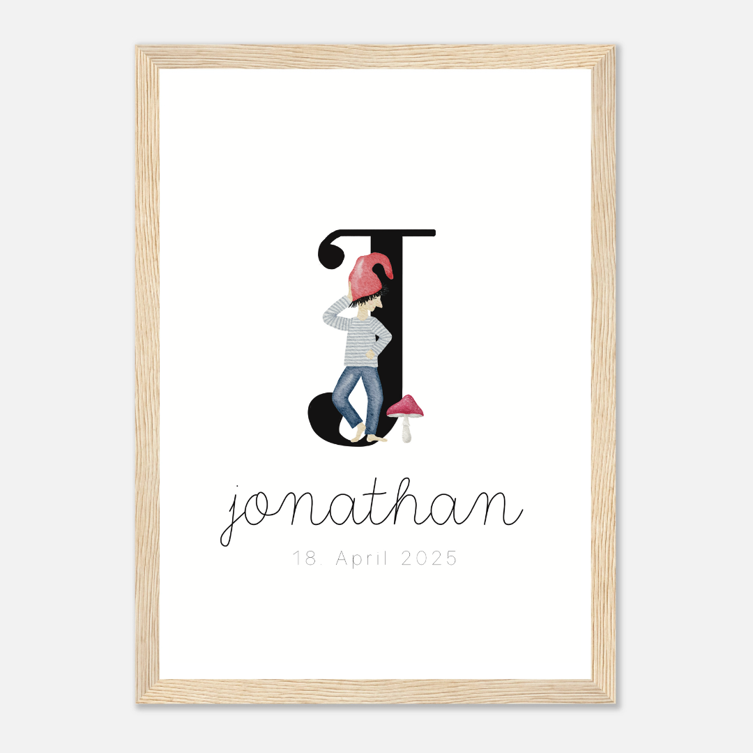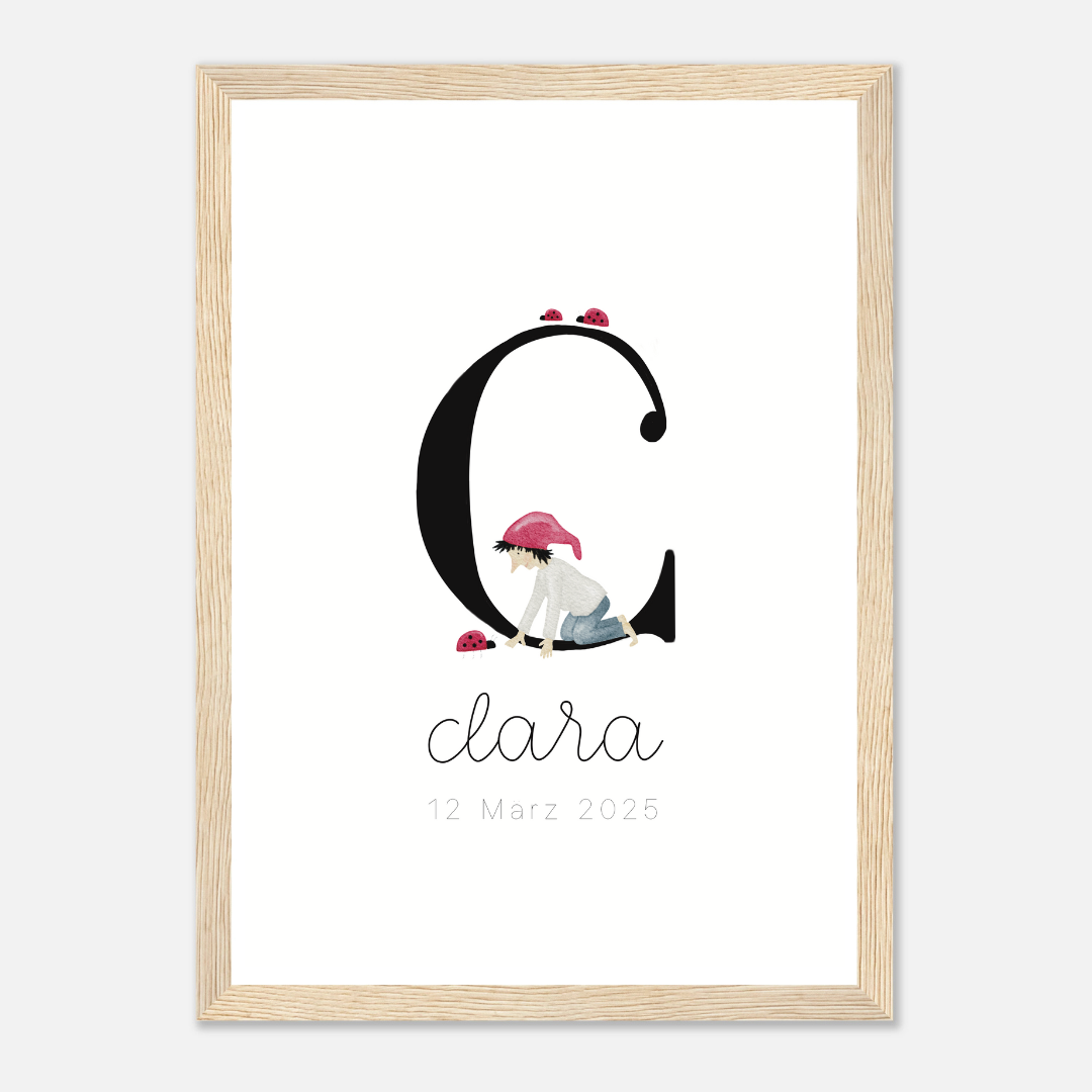 gerahmtes Geburtsposter mit Zwergenbuchstabe (personalisierbar)