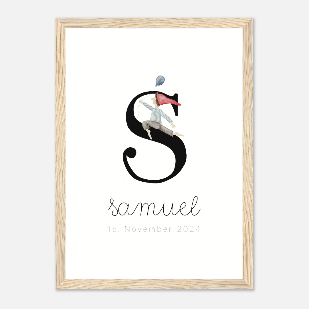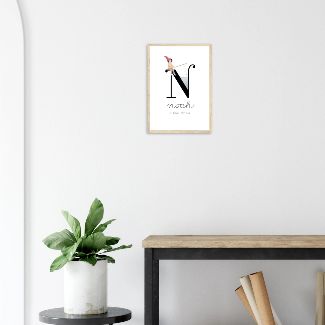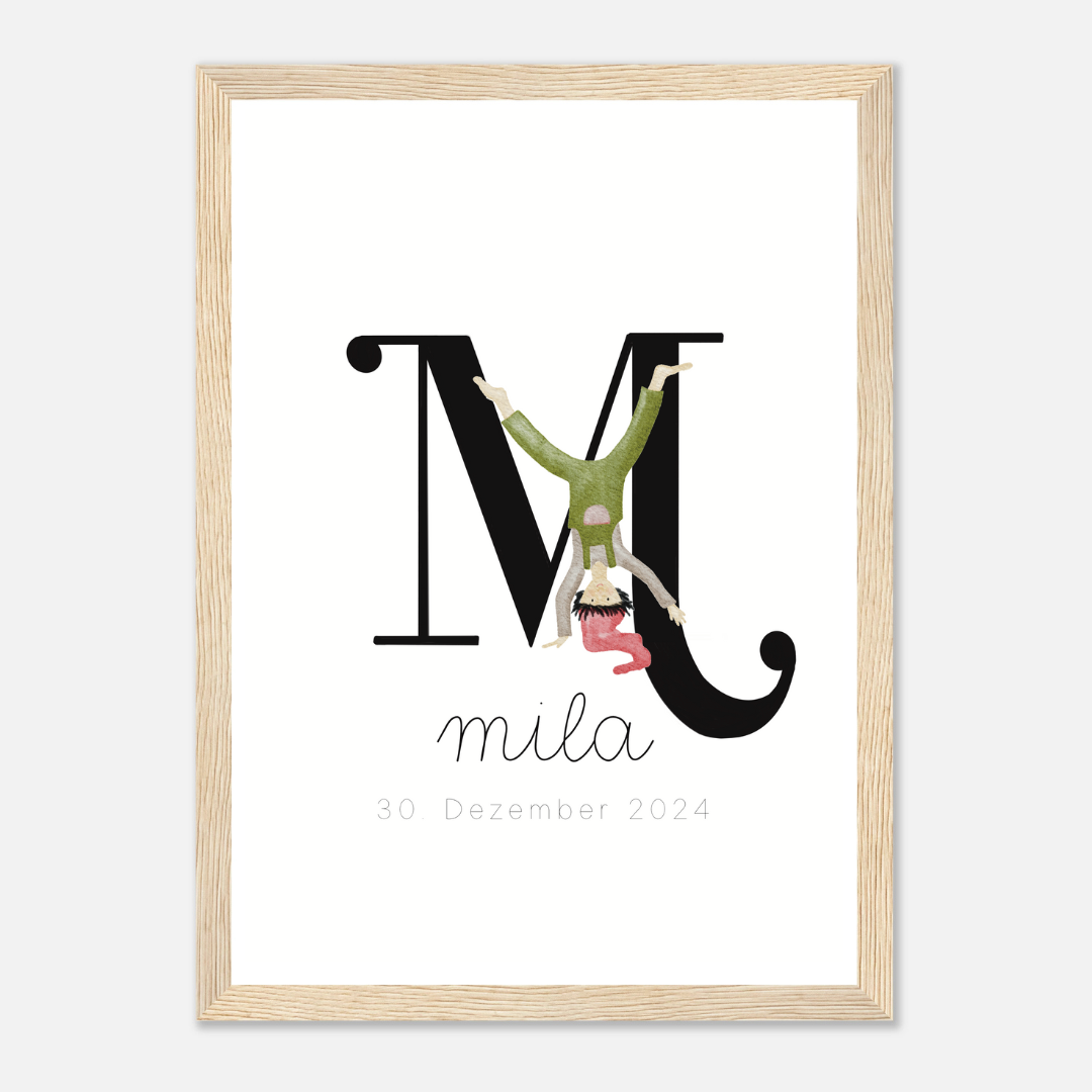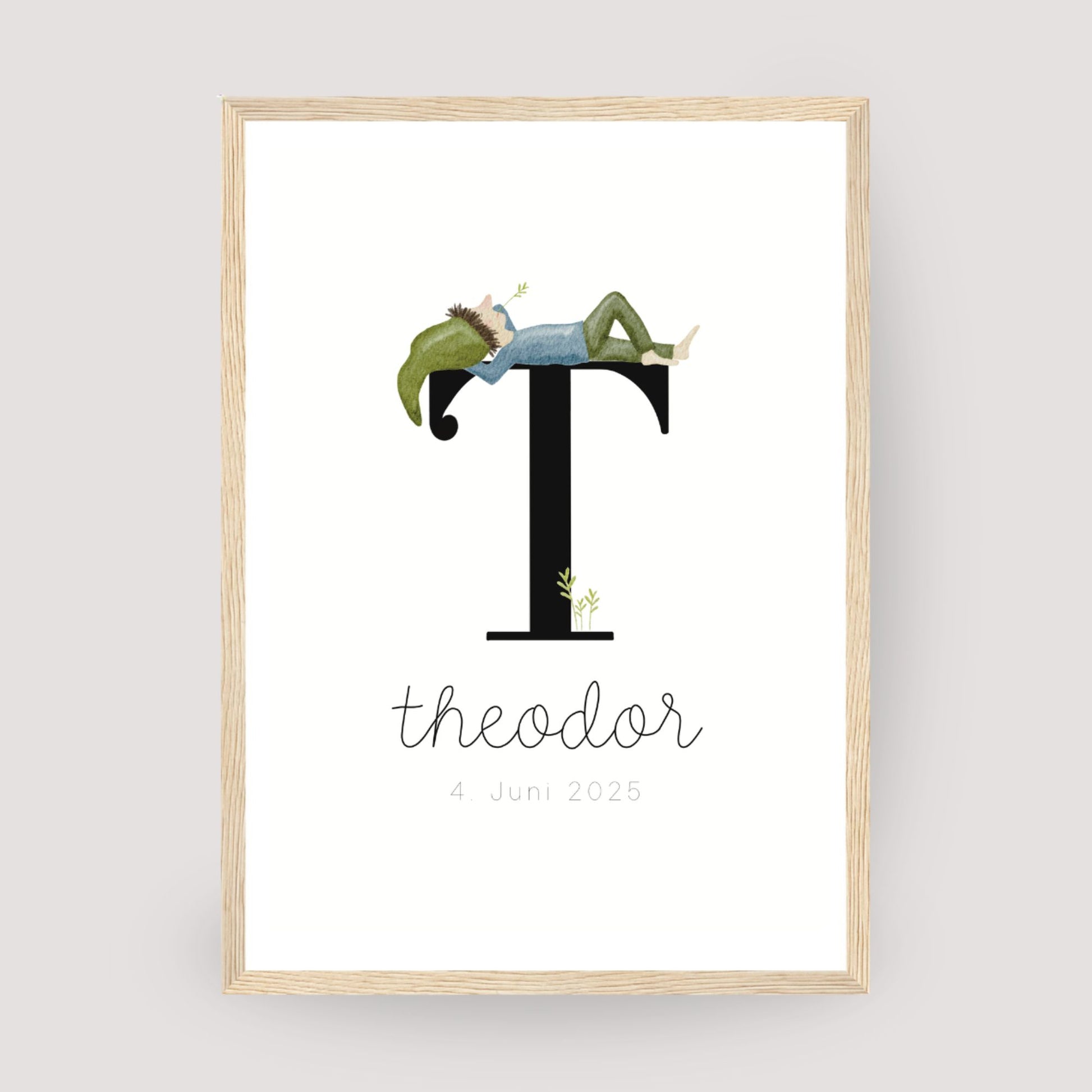 gerahmtes Geburtsposter mit Zwergenbuchstabe (personalisierbar)