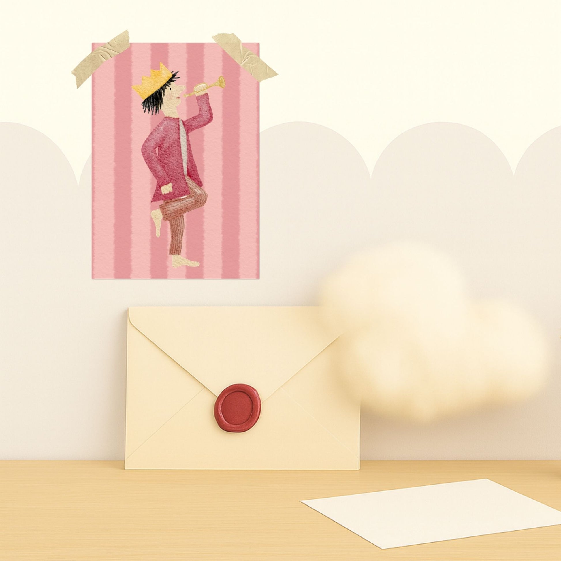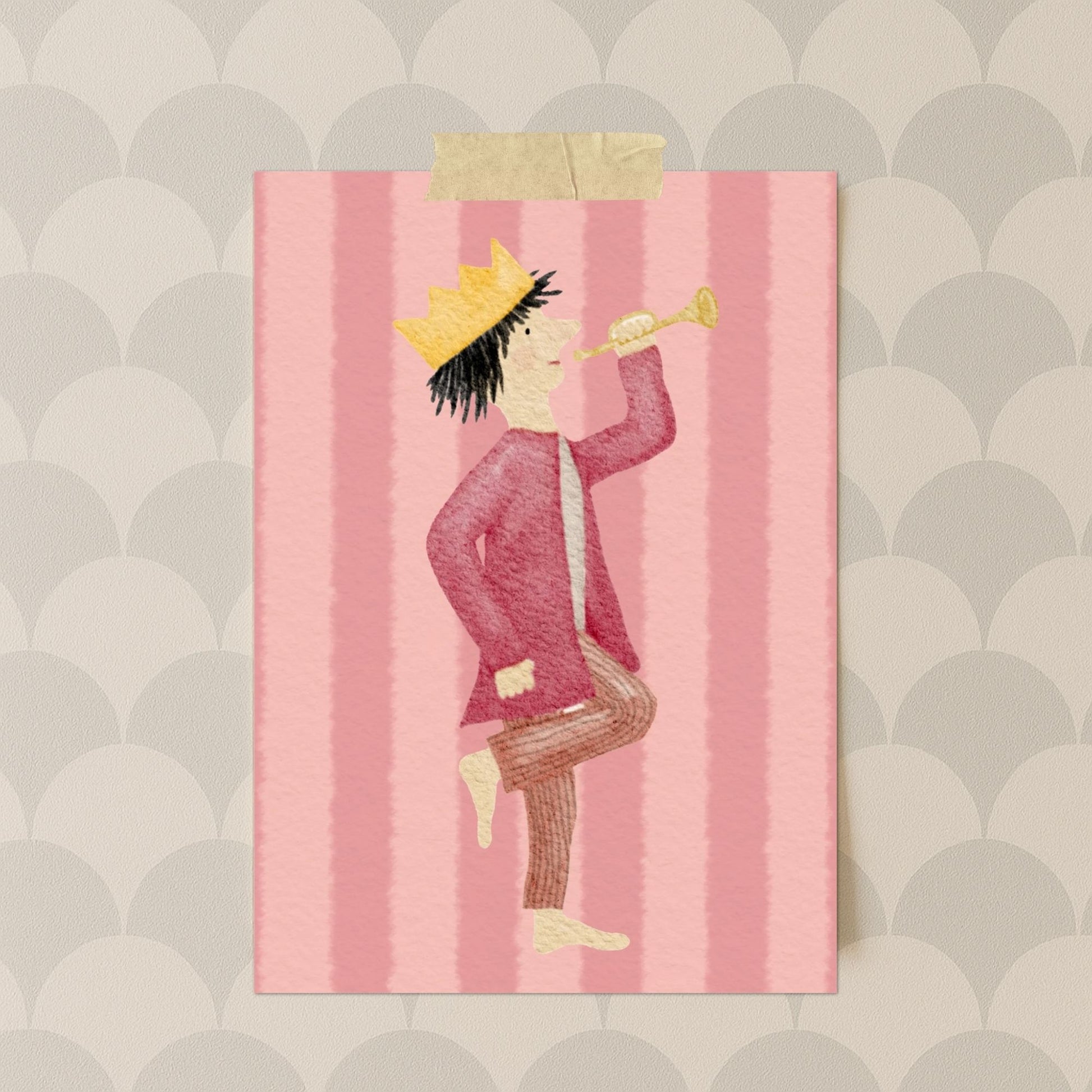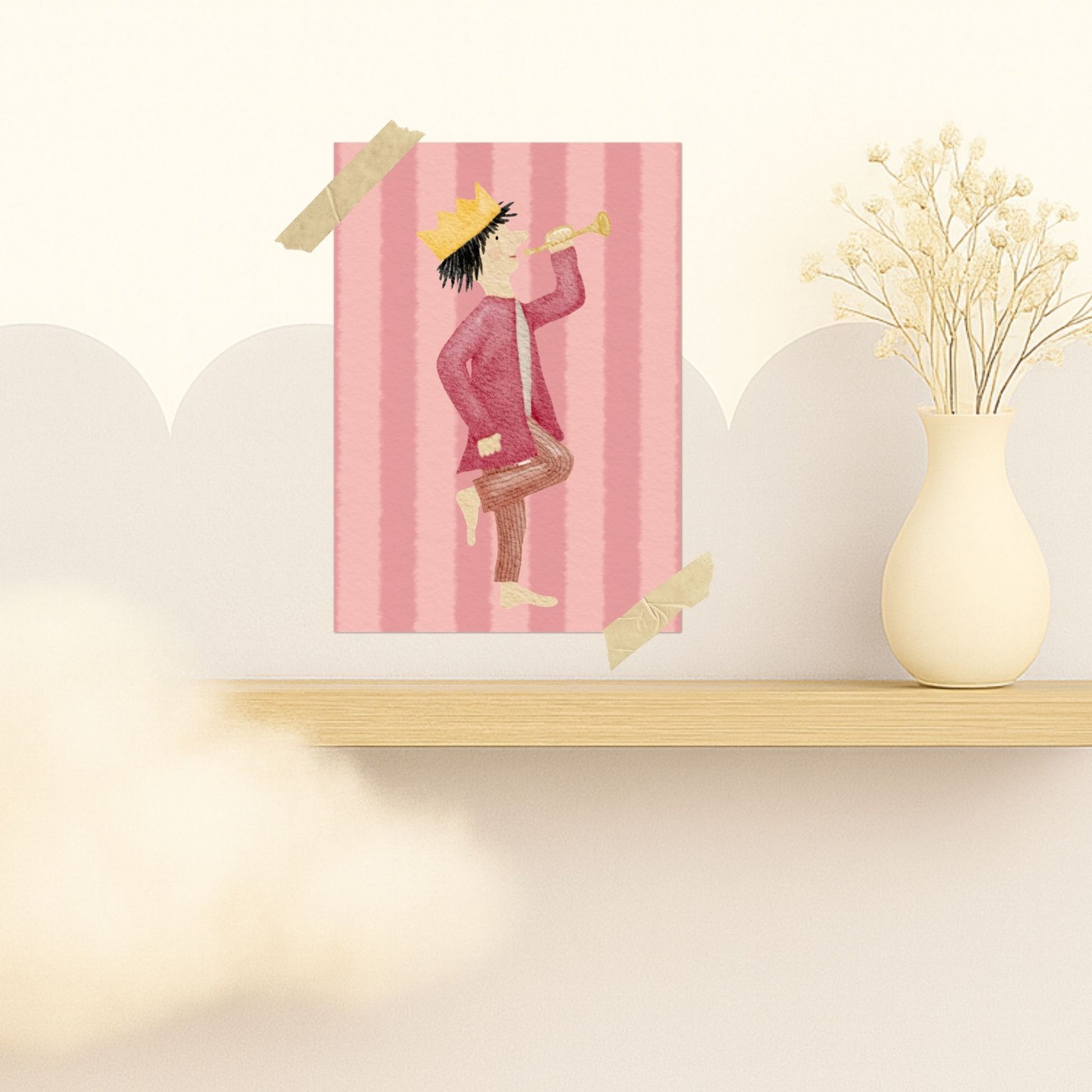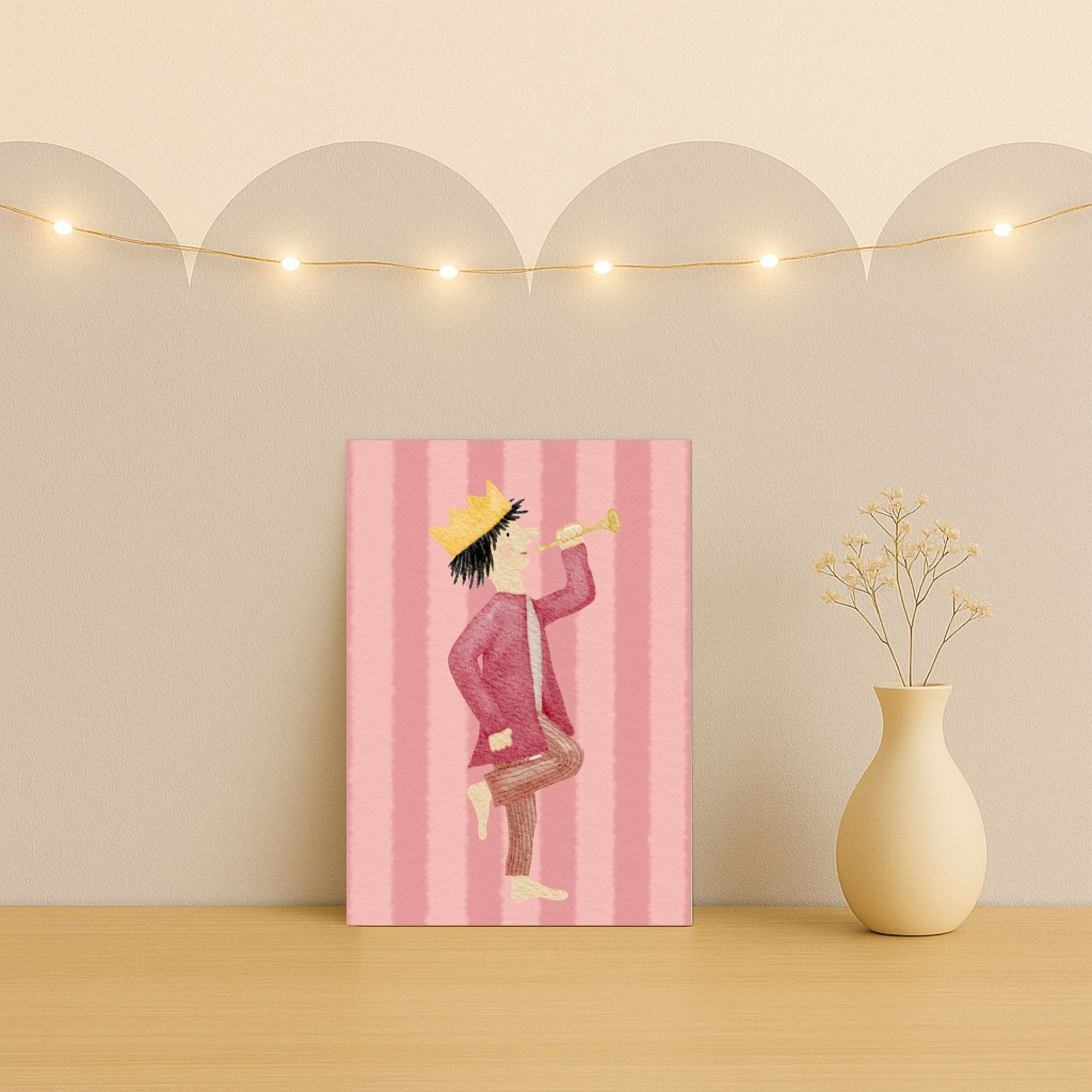 Unser kleiner König auf seinem bunten Streifen-Hintergrund zaubert nicht nur dir, sondern auch dem Beschenkten ein Lächeln ins Gesicht und überbringt Glückwünsche, die von Herzen kommen. Egal ob Geburtstag, einfach mal so oder ein besonderer Anlass – mit dieser Karte drückst du deine Gefühle auf ganz besondere Weise aus.