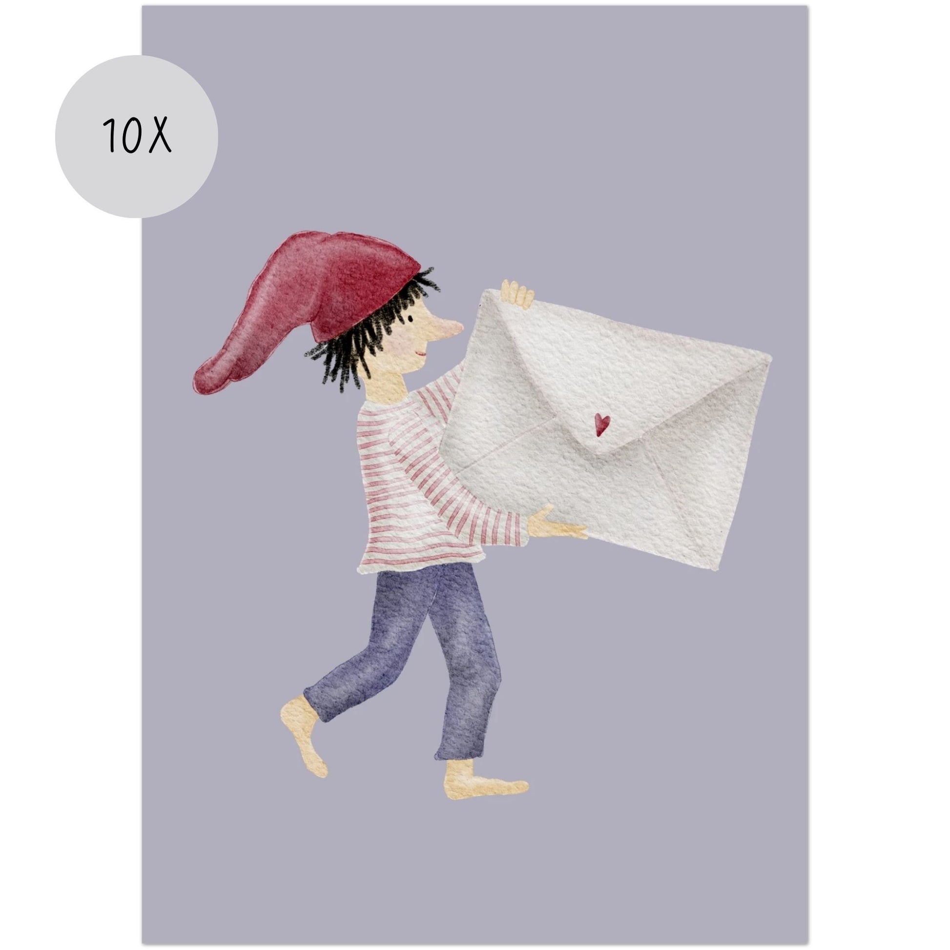 Grußkarten Set 10 Stück – „Zwergenpost“ | handillustrierte Karten A6/A5 | Motiv Zwerg mit Briefumschlag & liebevolle Grüße