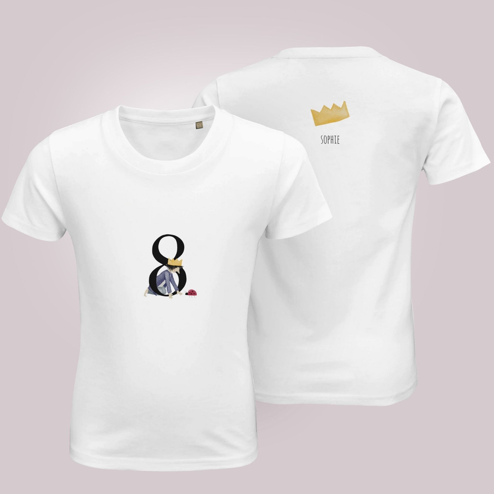 Der 8. Geburtstag ist ein großer Meilenstein im Leben deines Kindes – und was könnte diesen besonderen Tag besser feiern als unser liebevoll gestaltetes Geburtstags-T-Shirt? Mit der stolzen Zahl „8“ auf der Vorderseite, einer zauberhaften handgemalten Illustration eines kleinen Königs und einer niedlichen Geburtstagskrone auf dem Rücken, ist dieses Shirt das perfekte Outfit für kleine Geburtstagskinder.