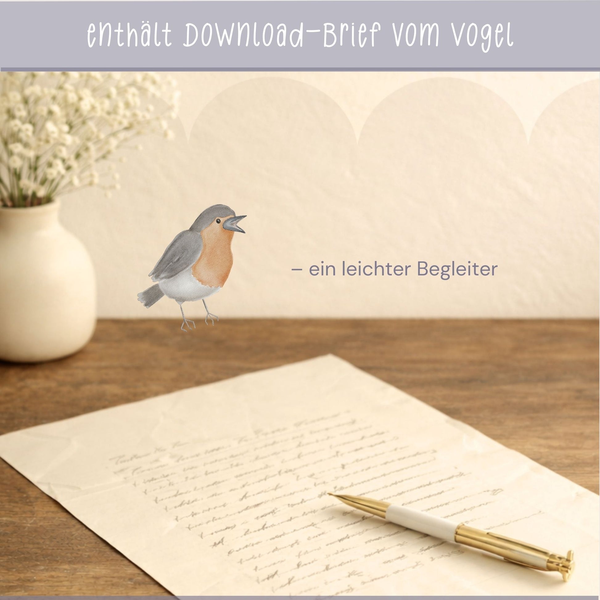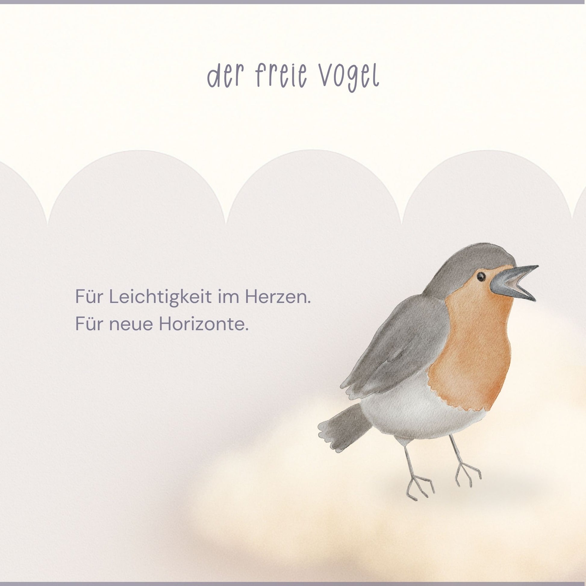 Der Vogel ist handillustriert und luftig gestaltet. Feine Linien, offene Formen, ruhige Farben. Ohne Text – damit Freiheit nicht begrenzt wird.