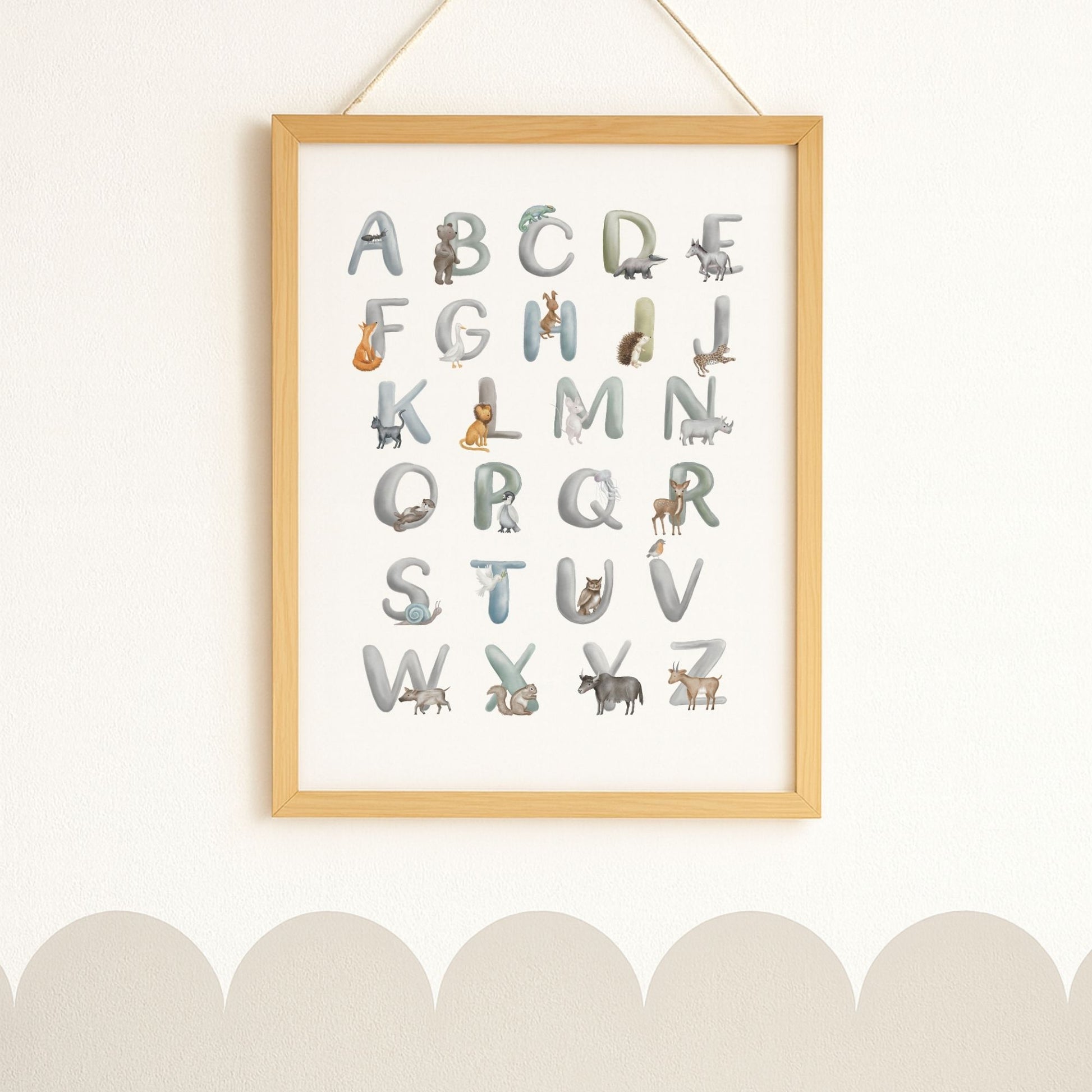 Tierisches ABC – Handillustriertes Buchstabenposter im Aquarellstil